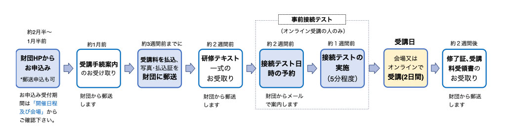 - 研修テキスト一式のお受け取り(財団から郵送します)